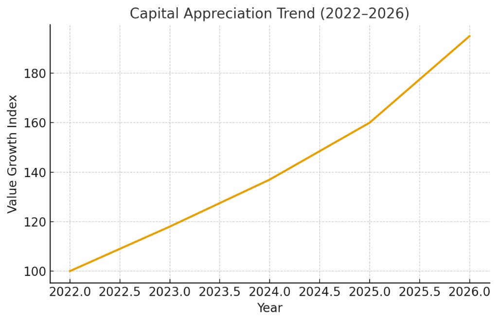 This chart illustrates a steady upward capital appreciation trend from 2022 to 2026, reflecting consistent value growth over the period.