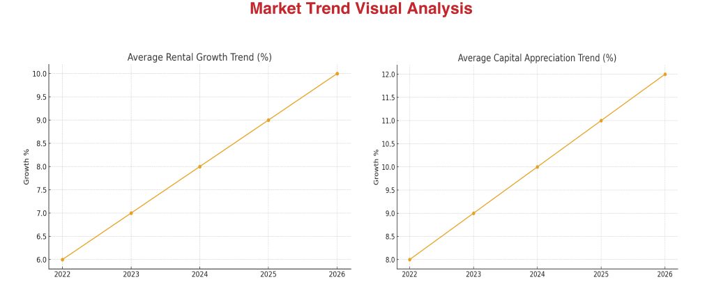 Average rental growth has increased steadily from ~6% (2022) to ~10% projected in 2026, strengthening passive income reliability.
